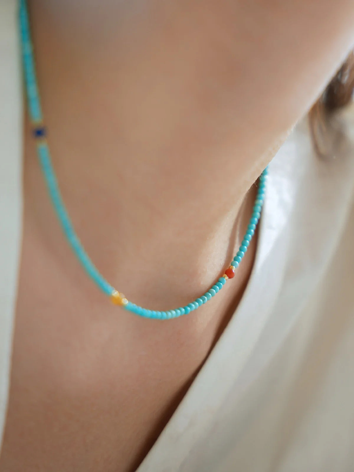Turquoise, Red Agate, Pearl, Cherry Amber, Lapis Lazuli, White Jade, Gold plated Sterling Silver