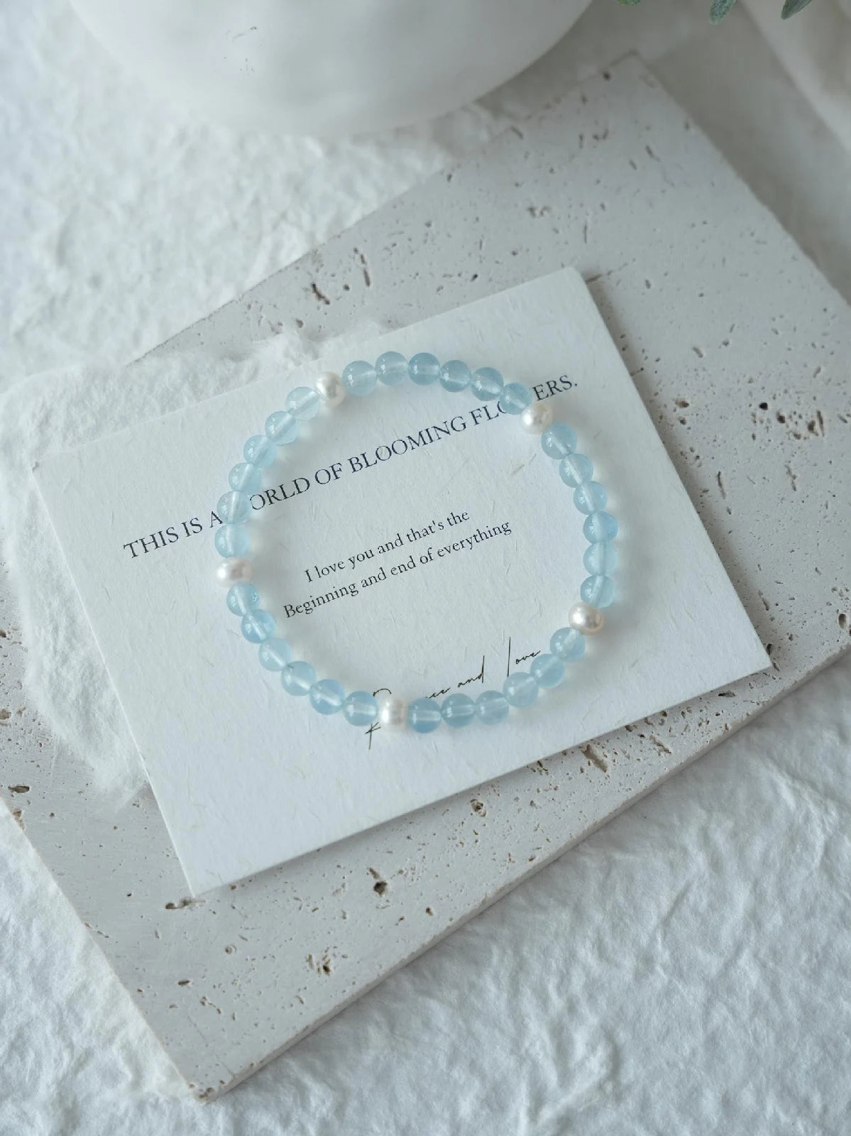 Experience the serenity of a sky blue lagoon. The Pearls harmonize to soothe a restless mind and Aquamarine wash away stress, restoring profound peace and crystalline mental clarity.